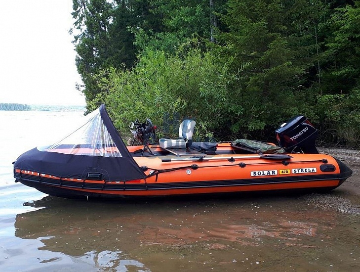 Легкость сборки: конструкция позволяет быстро и легко собирать и разбирать тент, даже находясь в лодке.