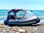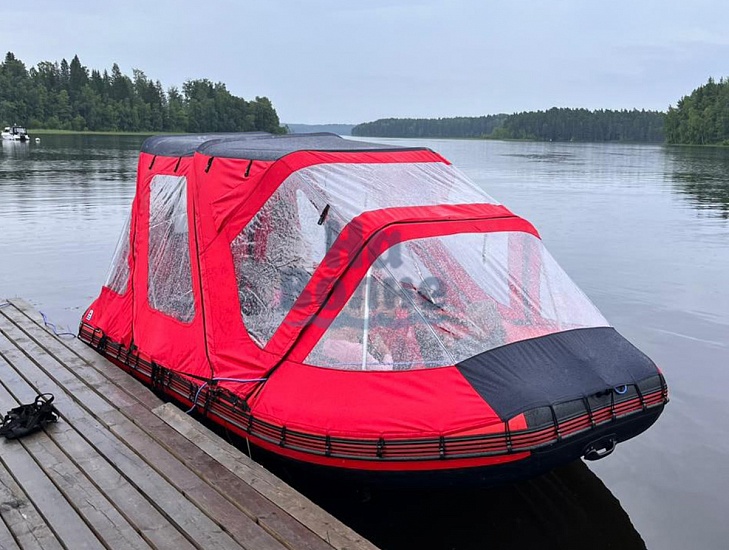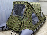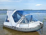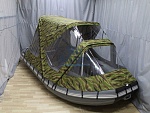 Легкость трансформации: возможность быстро отстегнуть достройку и использовать только носовой тент. Носовой тент также можно использовать, как отдельно от всей конструкции, так и в сочетании с крышей, подняв остальные части тента.